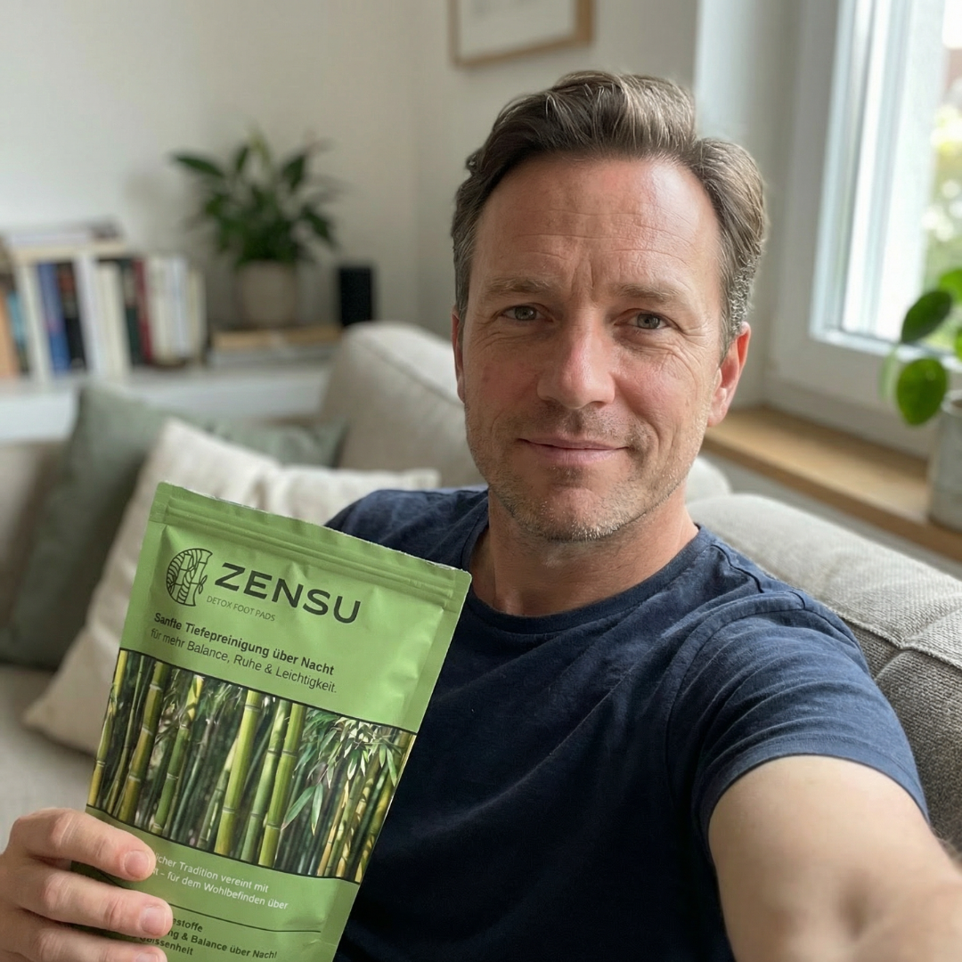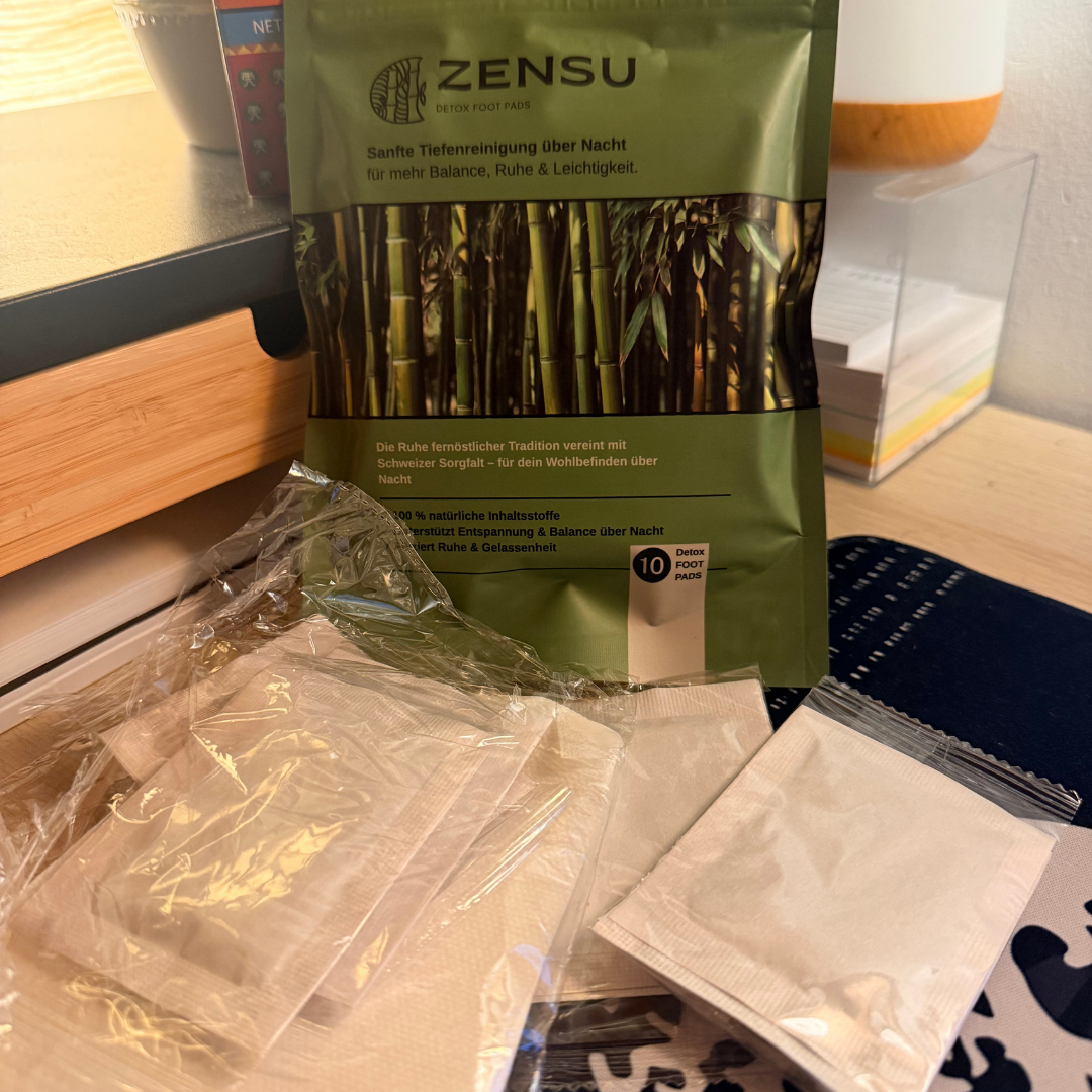 Zensu wird abends auf die Fussohlen aufgebracht und über Nacht getragen. Während du schläfst, wirken natürliche Körperwärme und Feuchtigkeit zusammen und aktivieren die enthaltenen Pflanzenextrakte. Die Anwendung ist darauf ausgelegt, den natürlichen Entgiftungsprozess des Körpers über die Fussohlen zu unterstützen und gleichzeitig Entspannung sowie nächtliche Regeneration zu fördern. Am nächsten Morgen fühlt sich der Körper leichter, ausgeglichener und in besserer Balance an, sodass du entspannt und erfrischt in den Tag starten kannst.